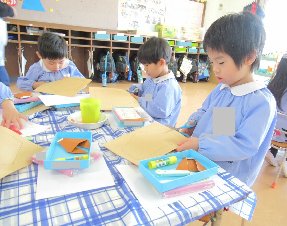 ☆ぱんだ組さんは、画用紙と折紙で『絵馬作り』に取り組んでいました🐎✨