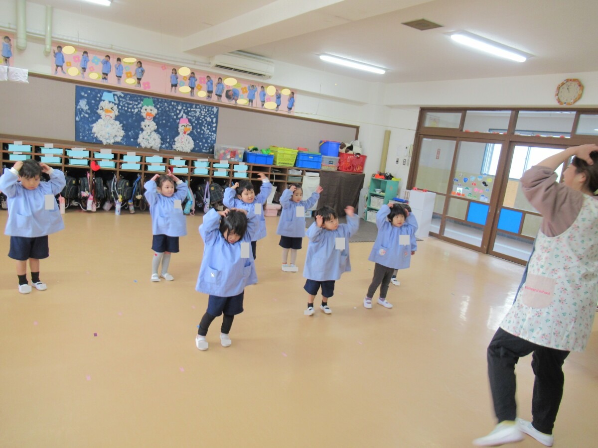 ☆ひよこ1組さんは、満3歳のお友だちが発表会のお遊戯の練習に取り組んでいました🎵
