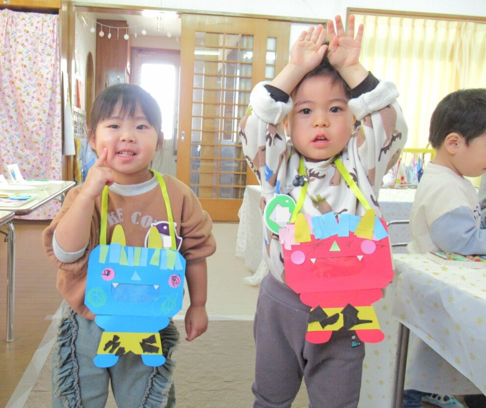 今回は、2月3日の節分に向けて、鬼の形をした豆入れ作りに取り組みました👹✨