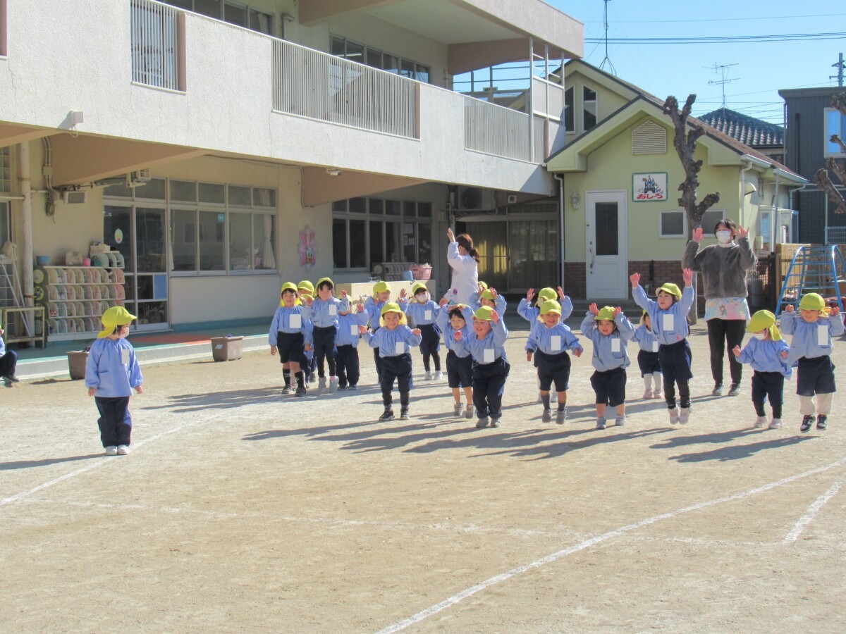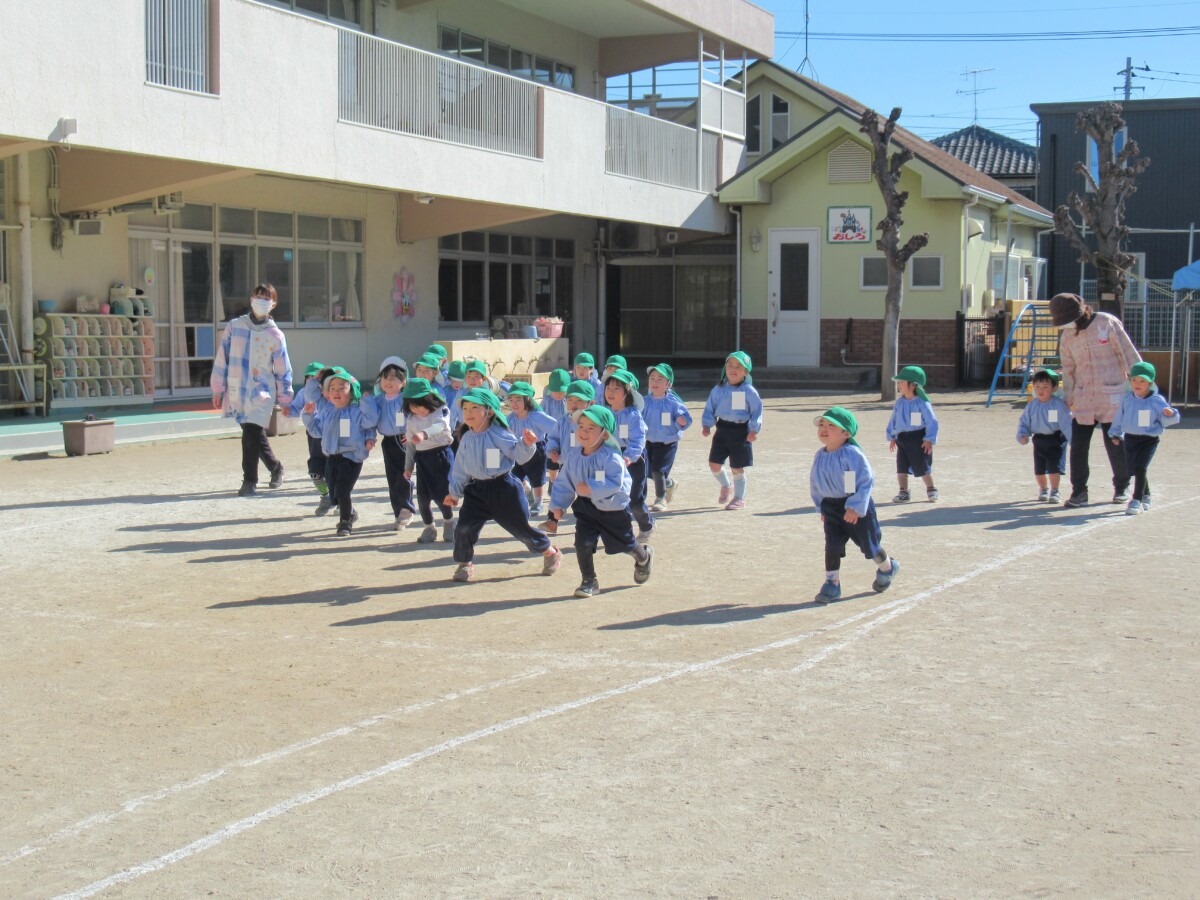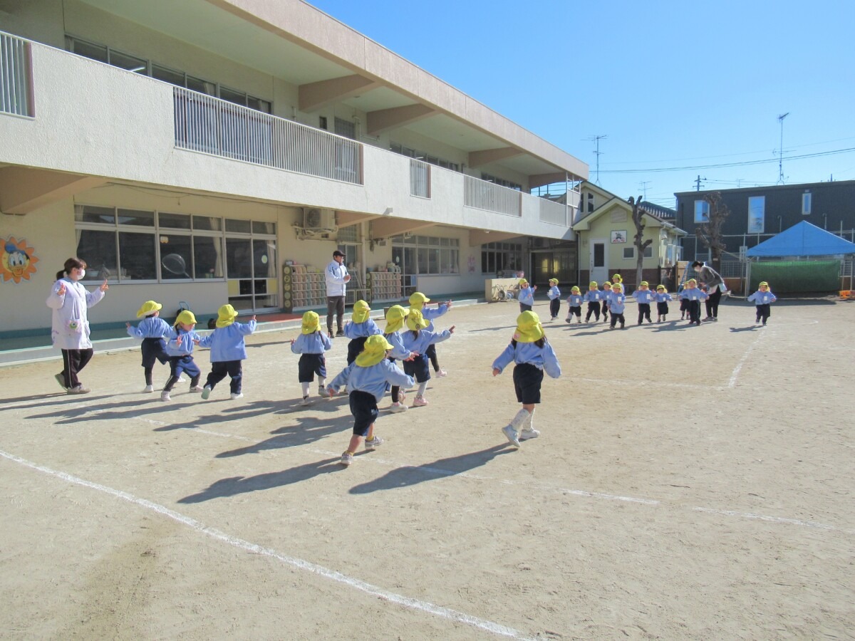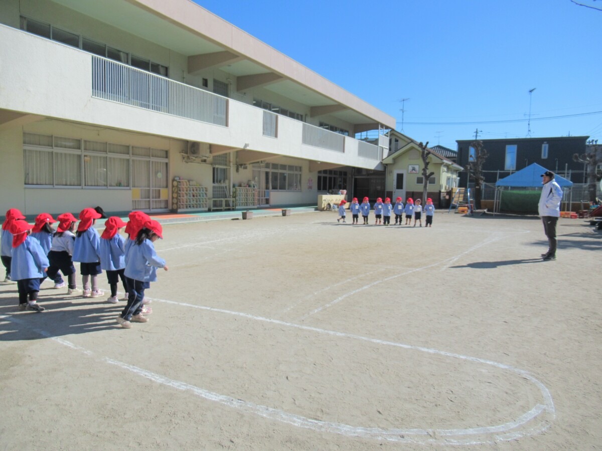 お友だちと対面になり、反対側まで走ったりスキップをしたり片足でジャンプ(けんけん)をしたりしていました!!