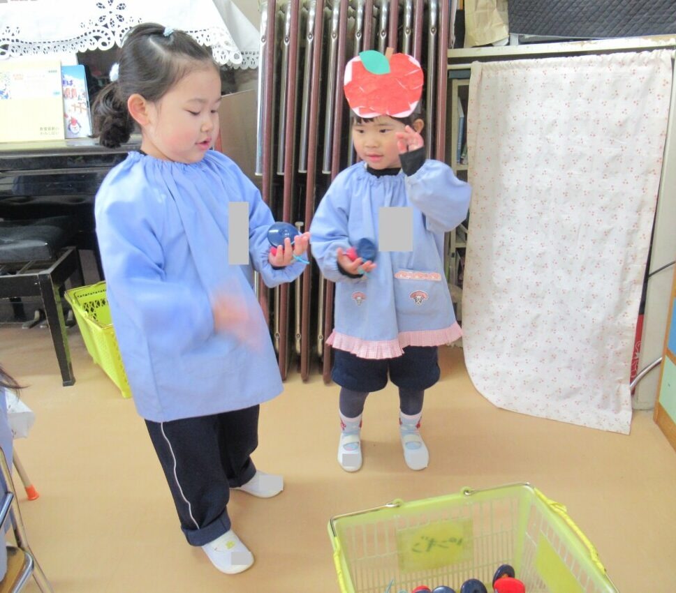 ☆満3歳のお友だちは、発表会のお遊戯で身に付ける『りんご』の製作に取り組んでいました🍎✨