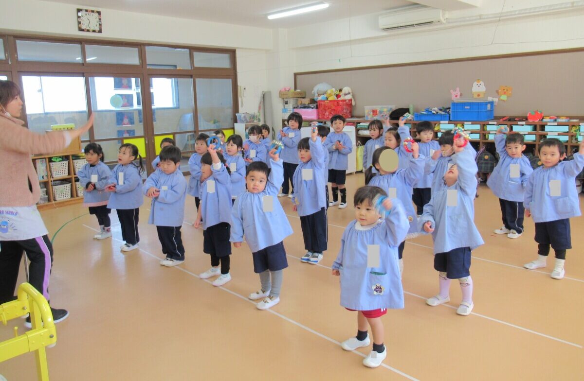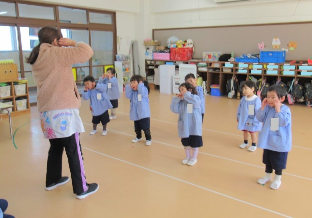 ☆満3歳のお友だちはお遊戯にも取り組んでいました✨