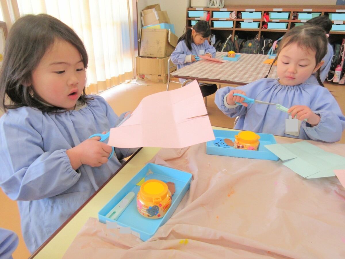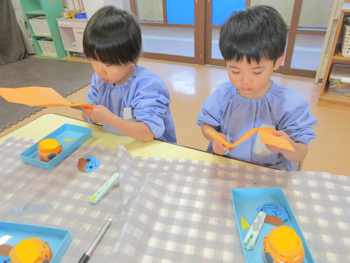 ☆ひよこ1組さんは、はさみを使って製作に取り組んでいました✨