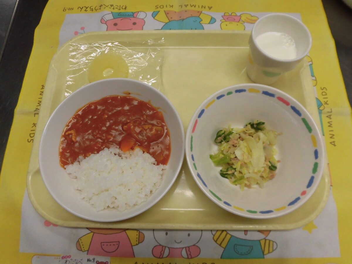 1月30日(金)ハヤシライス・フレークサラダ・牛乳・パイン缶