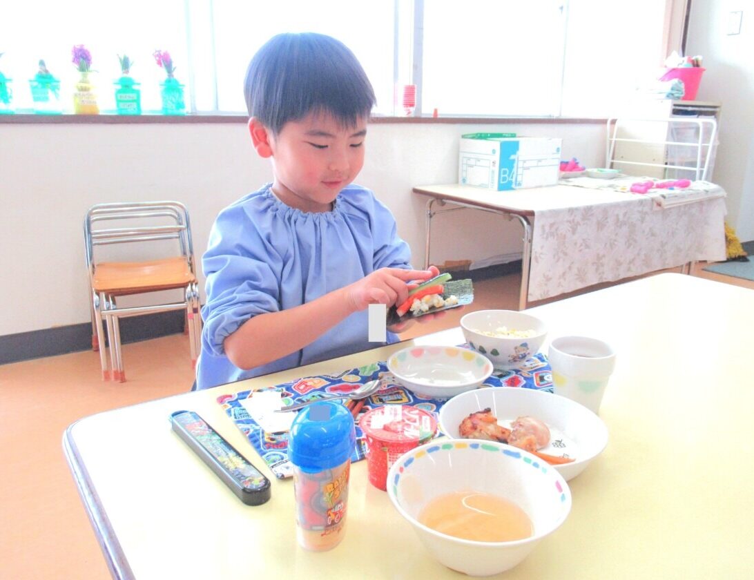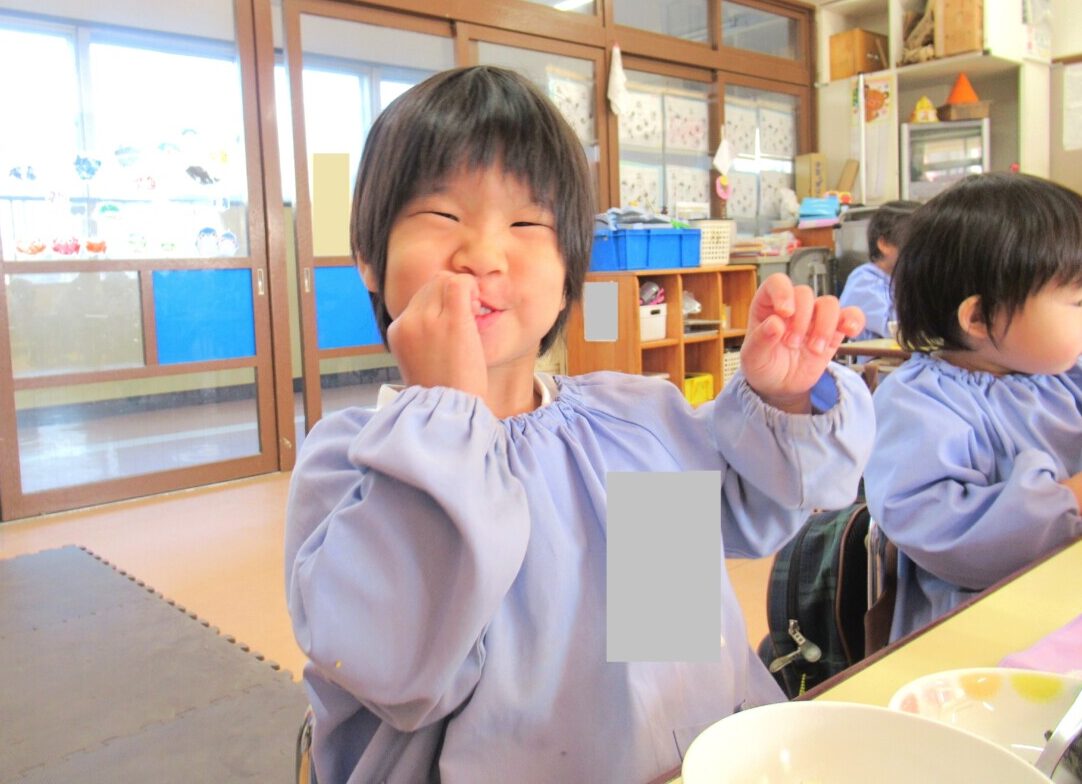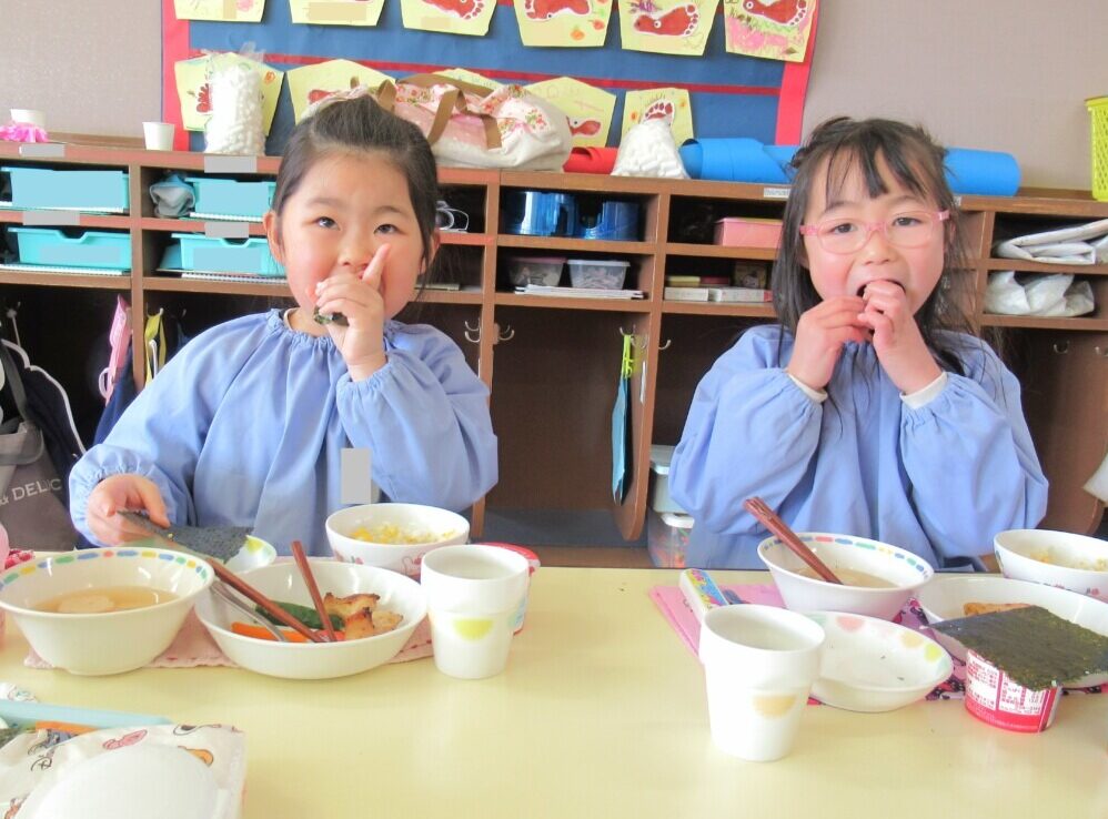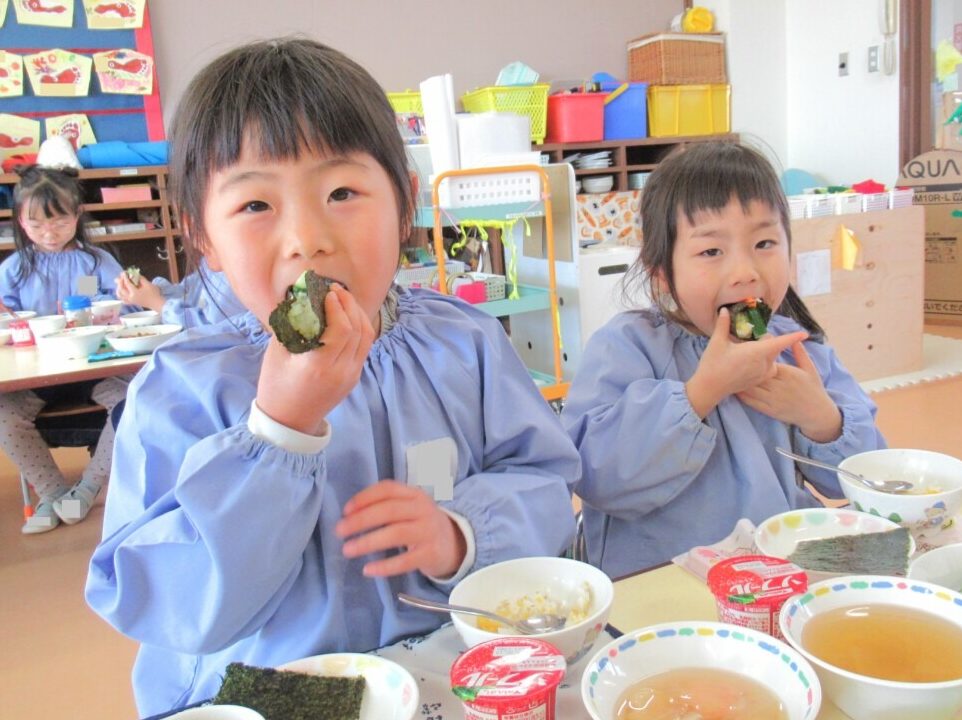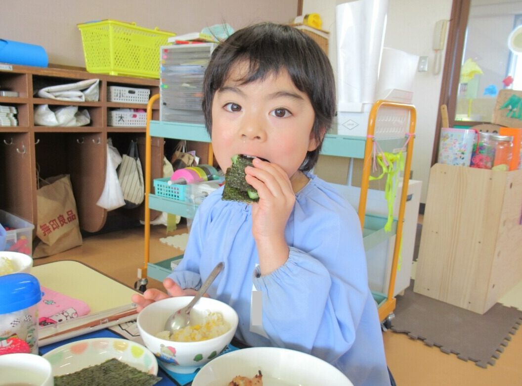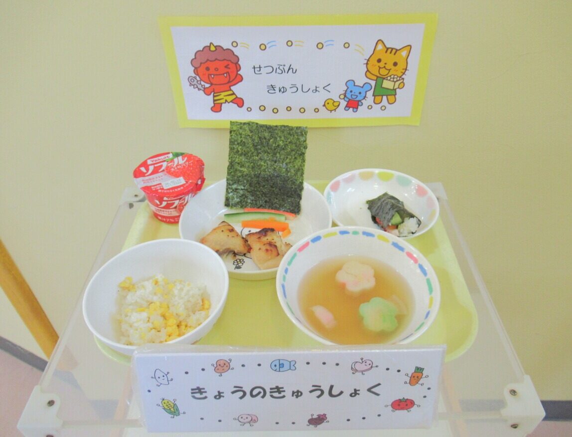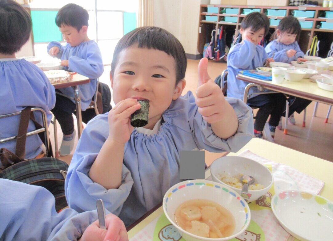 ホーム > 保育 > 2月3日(火) 節分給食☆ 2026/02/03 2月3日(火)の節分の日の給食で、自分で作る『恵方巻』の提供がありました👹🎵 ☆海苔にご飯と具材を乗せて、巻きました✨ ☆『恵方巻を上手に作れたよ😊🎵』 ☆自分で作った恵方巻を嬉しそうに味わっていました😊✨ - 保育