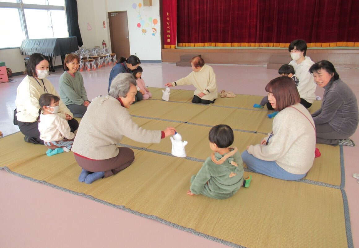 2月10日(火)に、親子ふれあいあそびがあり、たまご組さんのお友だちや小さなお友だちがあそびに来てくれました🎵