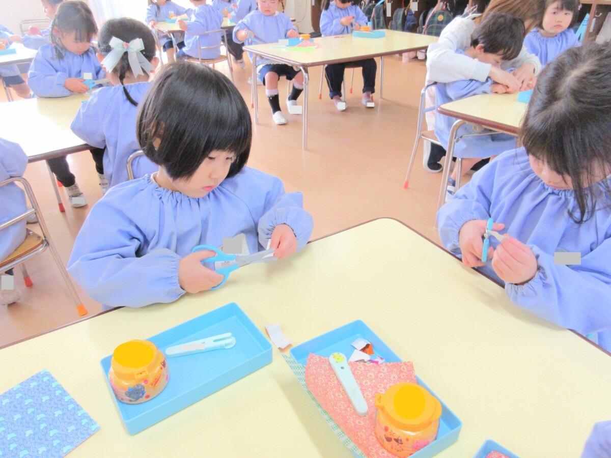 2月12日(木)に、年少組さんがひなまつり製作に取り組んでいました🎵(写真は、ひよこ1組さんとひよこ3組さんの様子です)