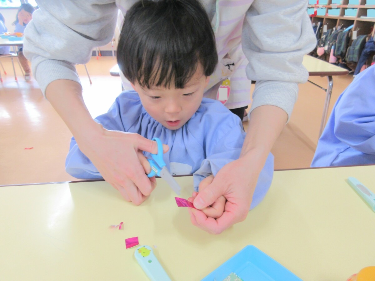 ☆満3歳のお友だちもはさみに挑戦していました✨