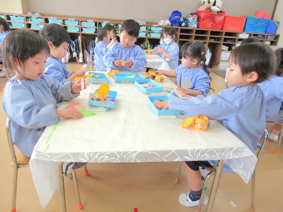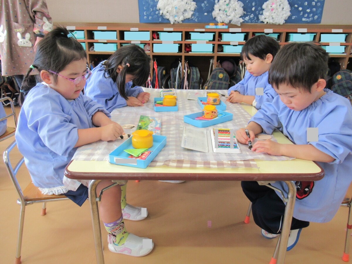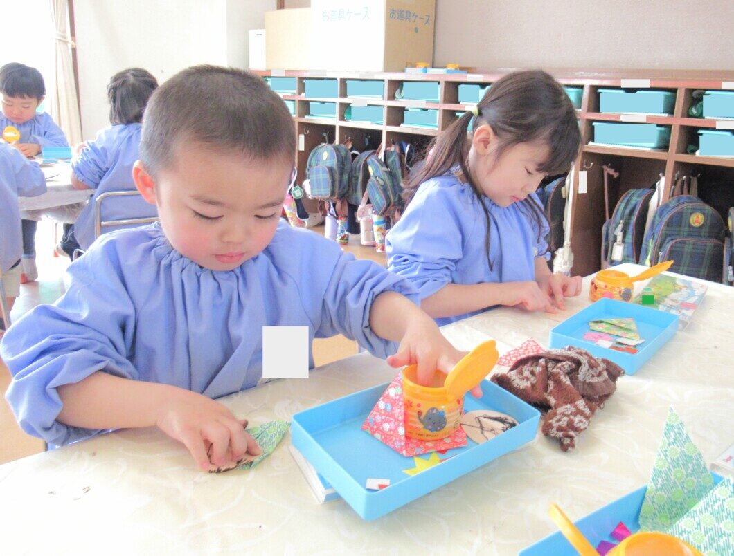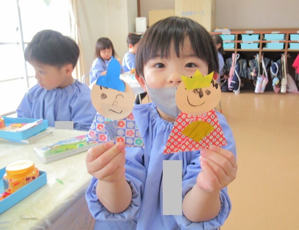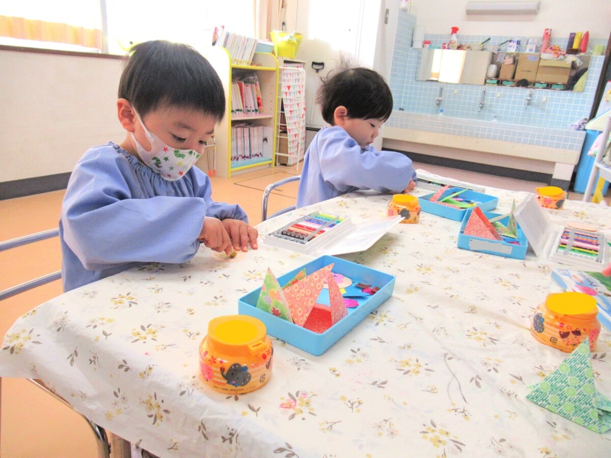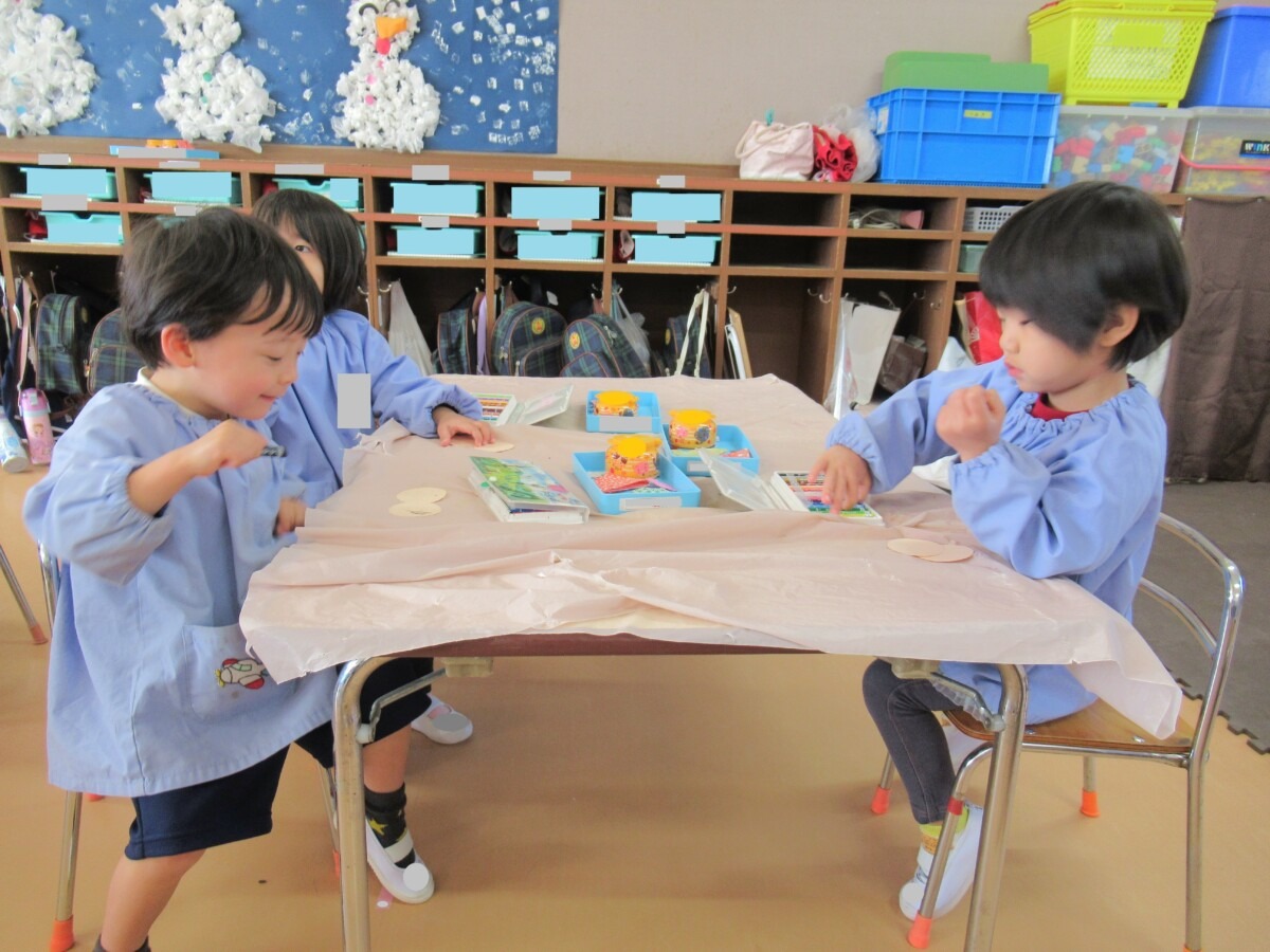 2月17日(火)に、年少組さんが、ひなまつり製作に取り組んでいました🎎✨