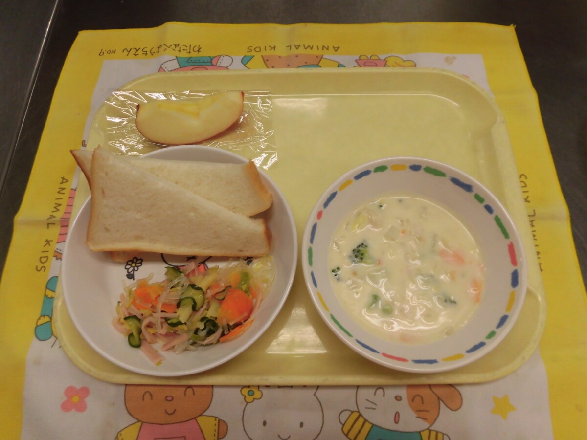 2月20日(金)食パン・白菜のシチュー・春雨サラダ・りんご