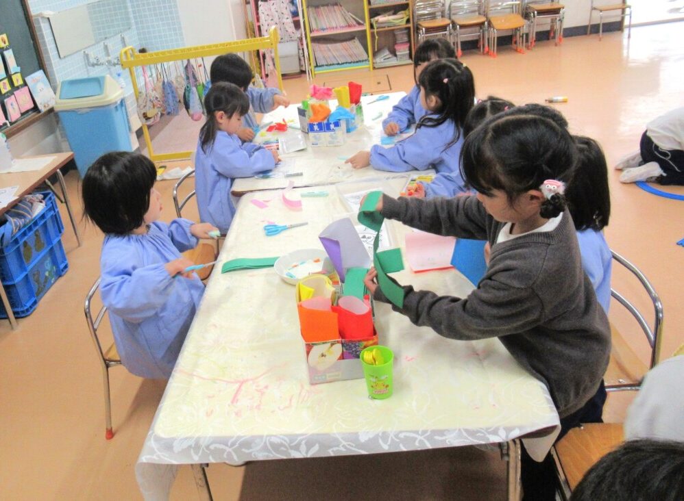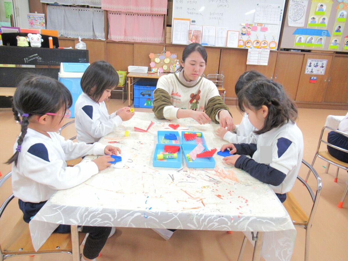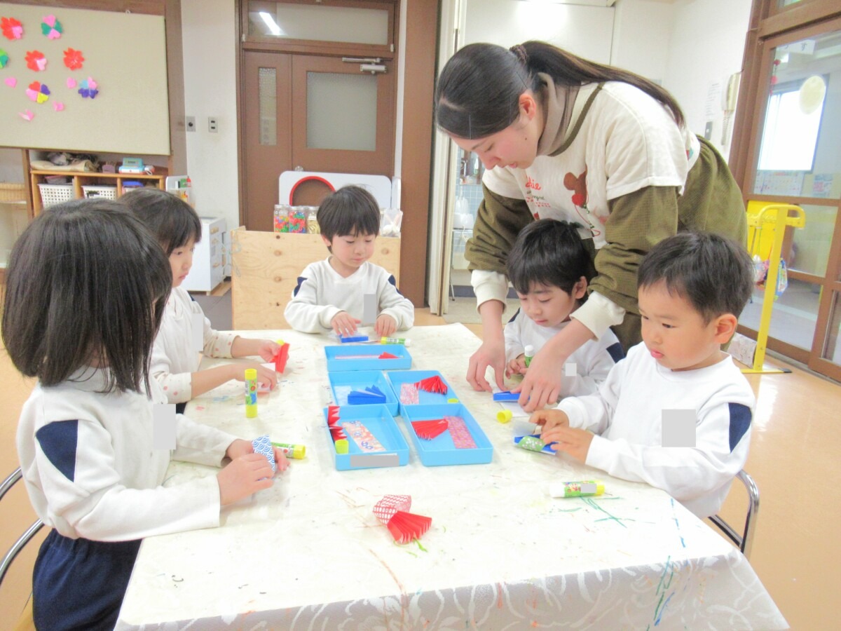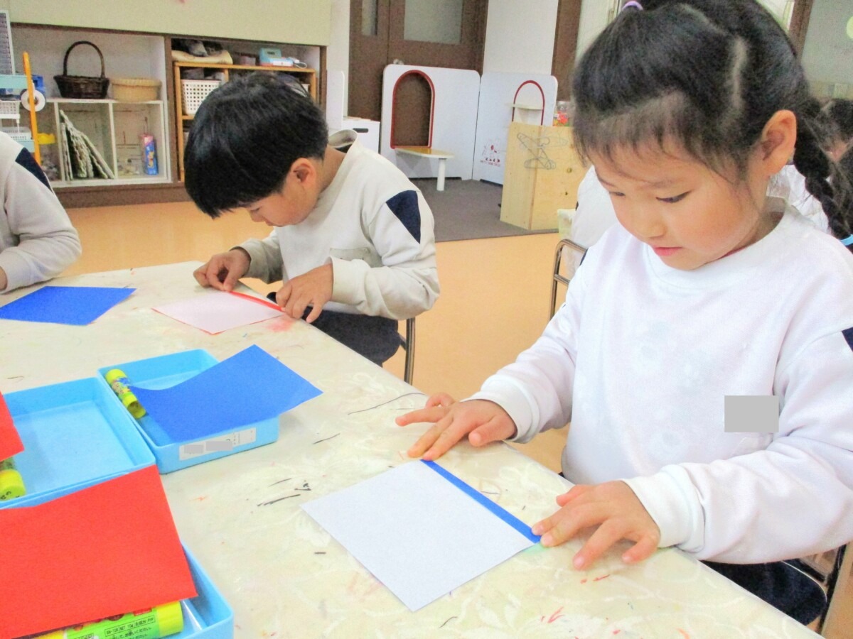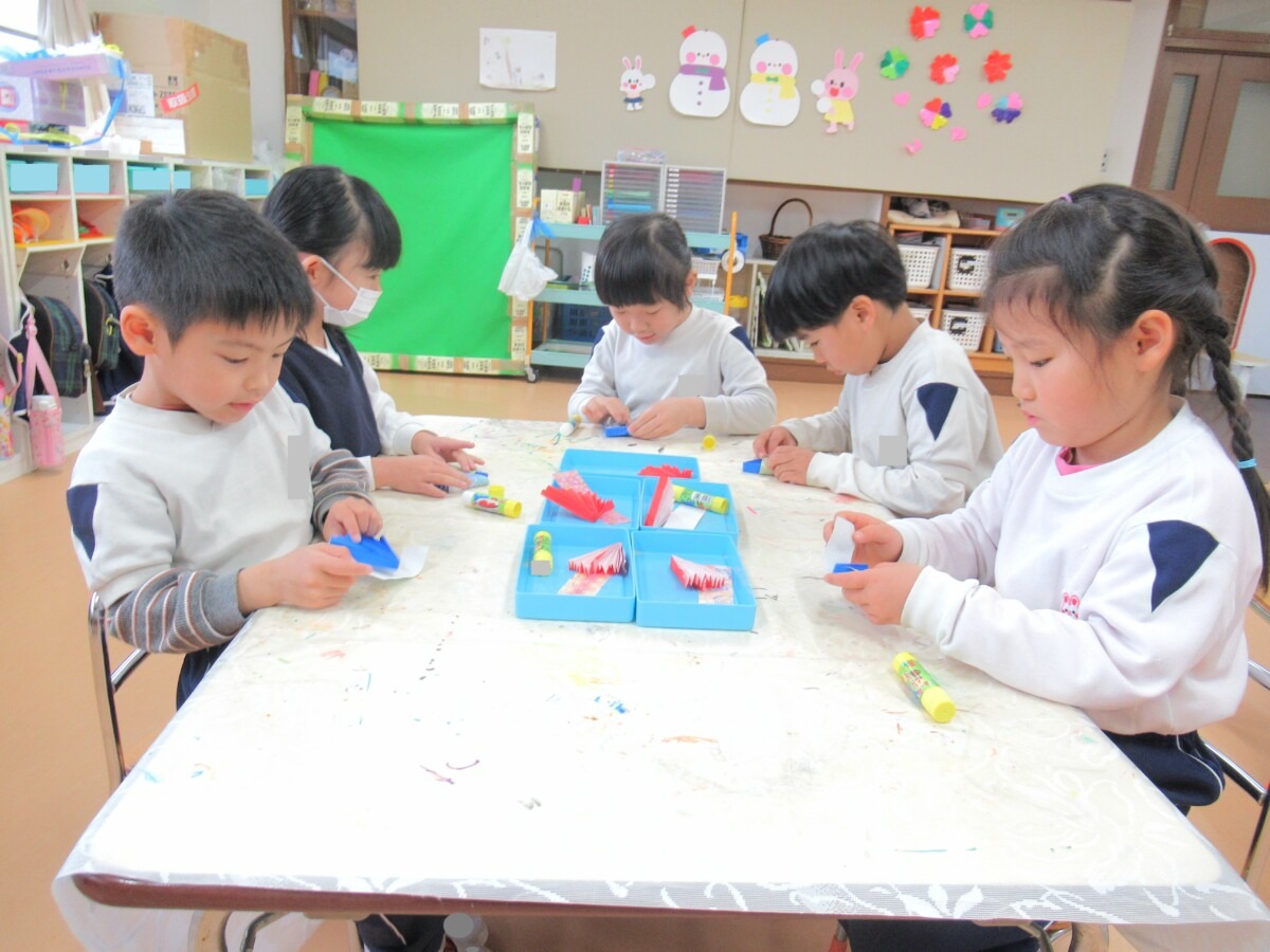☆りす組さんは、折紙を使って”ひなまつり製作”に取り組んでいました🎎✨