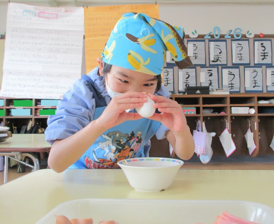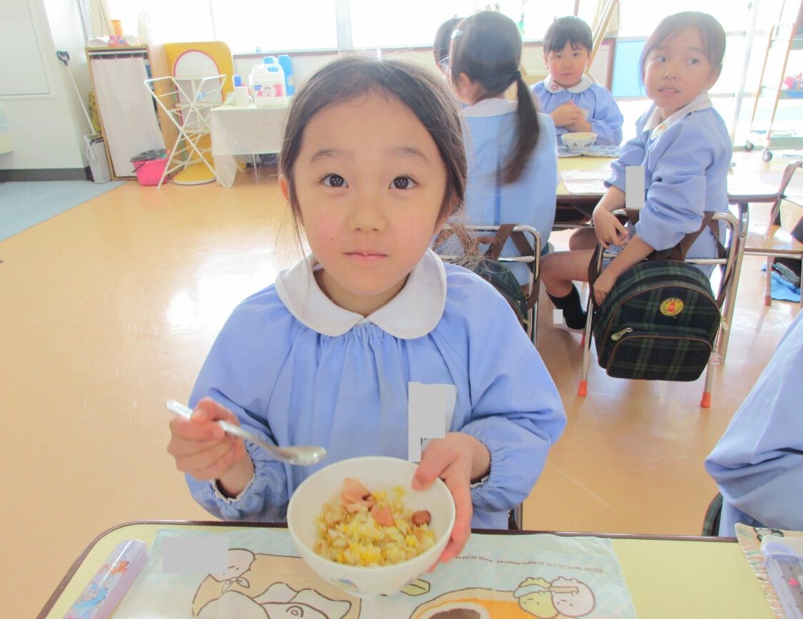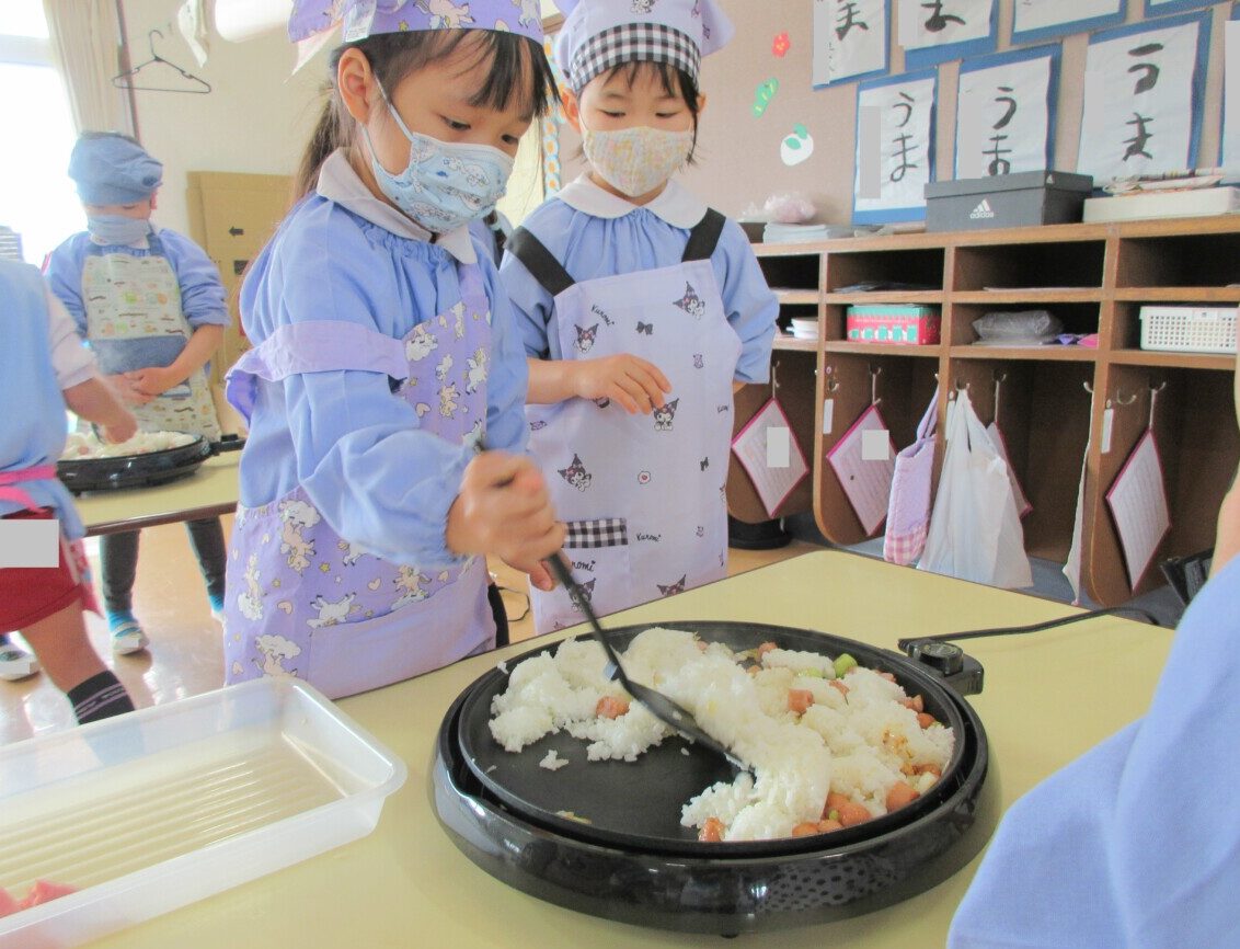 2月27日(金)にきりん組さんがクッキングで『チャーハン』を作っていました🎵