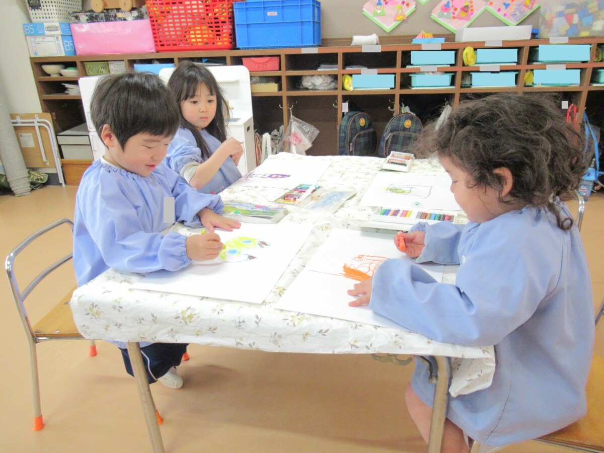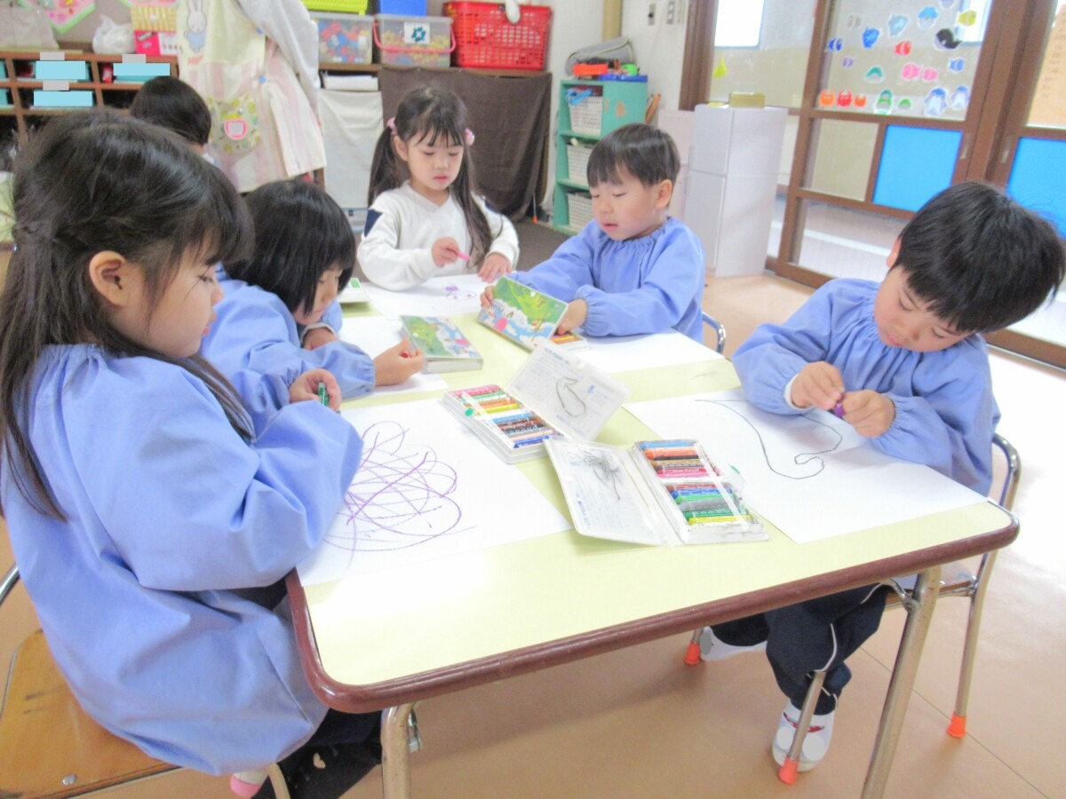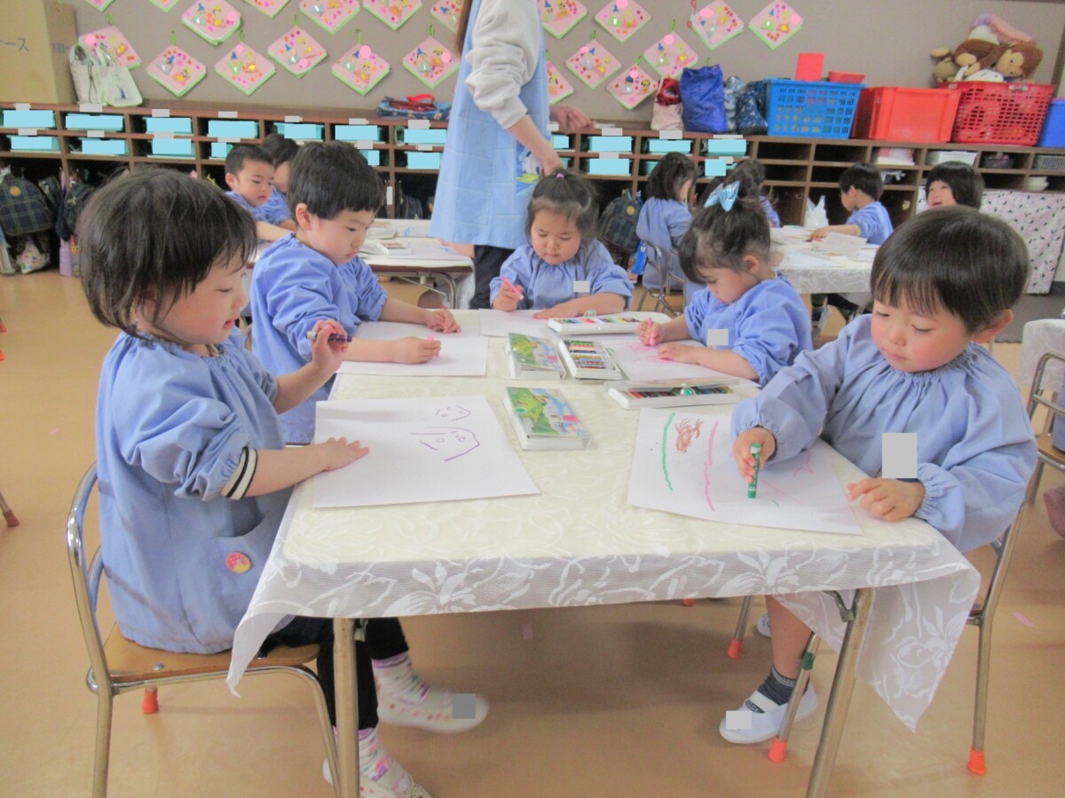 ホーム > 保育 > 3月2日(月) 年少組さん自由画☆ 2026/03/02 3月2日(月)に年少組さんが画用紙に絵を描く『自由画』に取り組んでいました🎵 ☆それぞれ、楽しそうに絵を描いていました🎵 - 保育