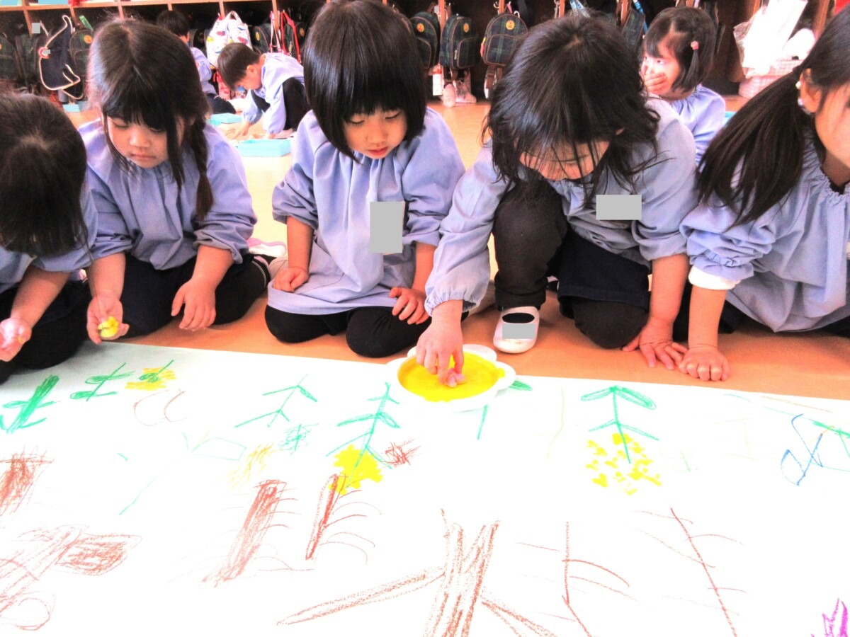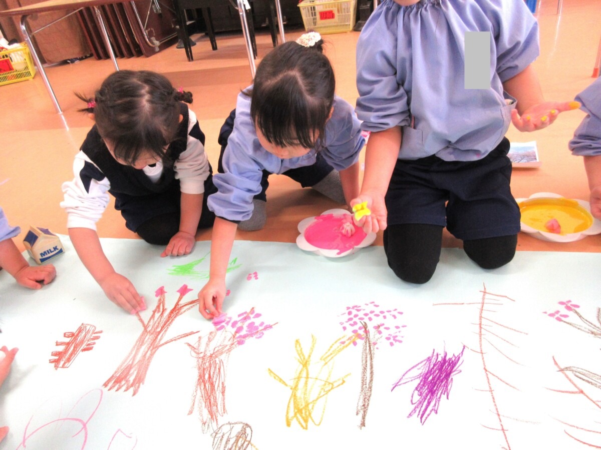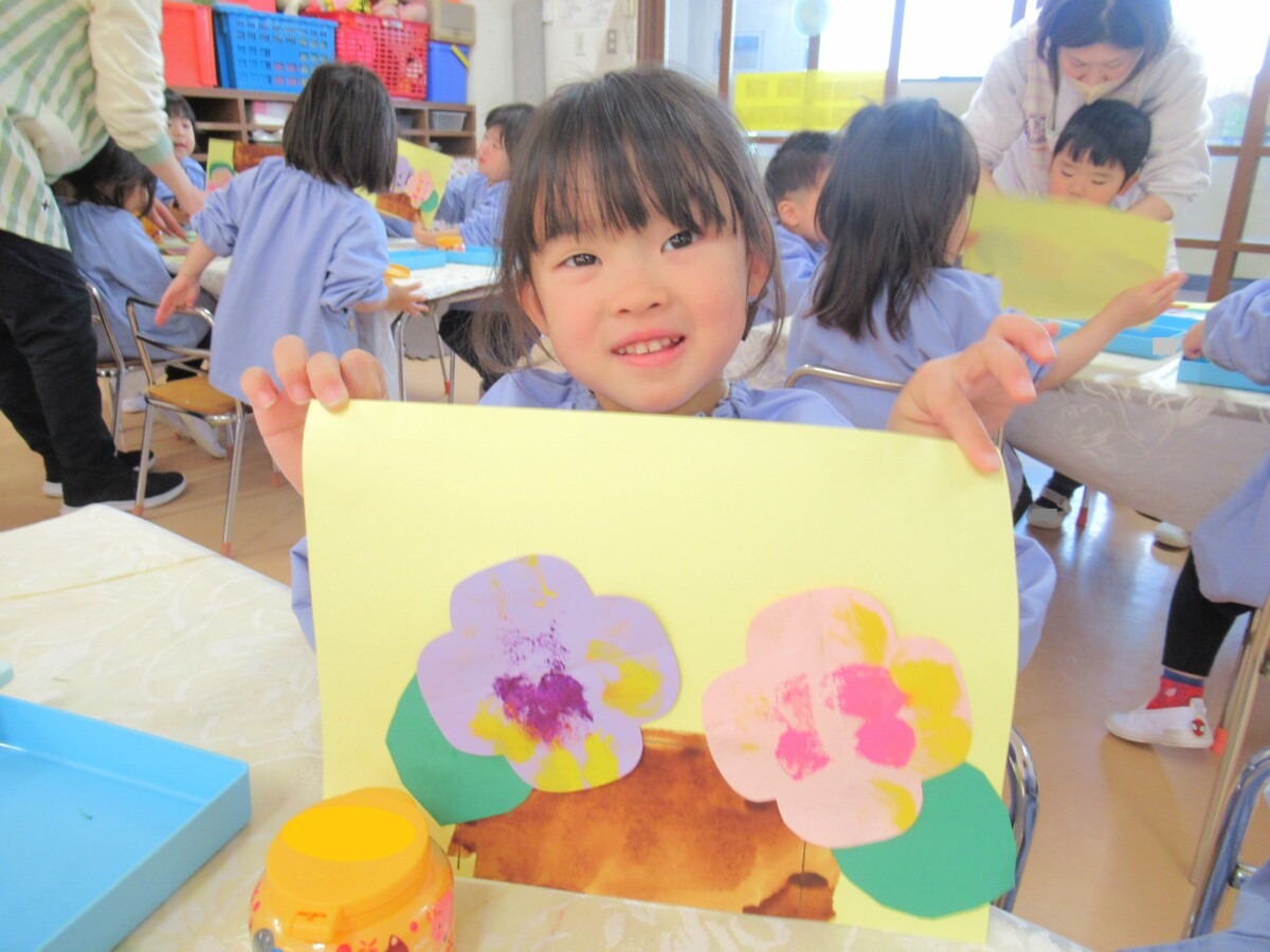 ☆ひよこ1組さんは、スポンジのスタンプで春の花を表現していました🌼