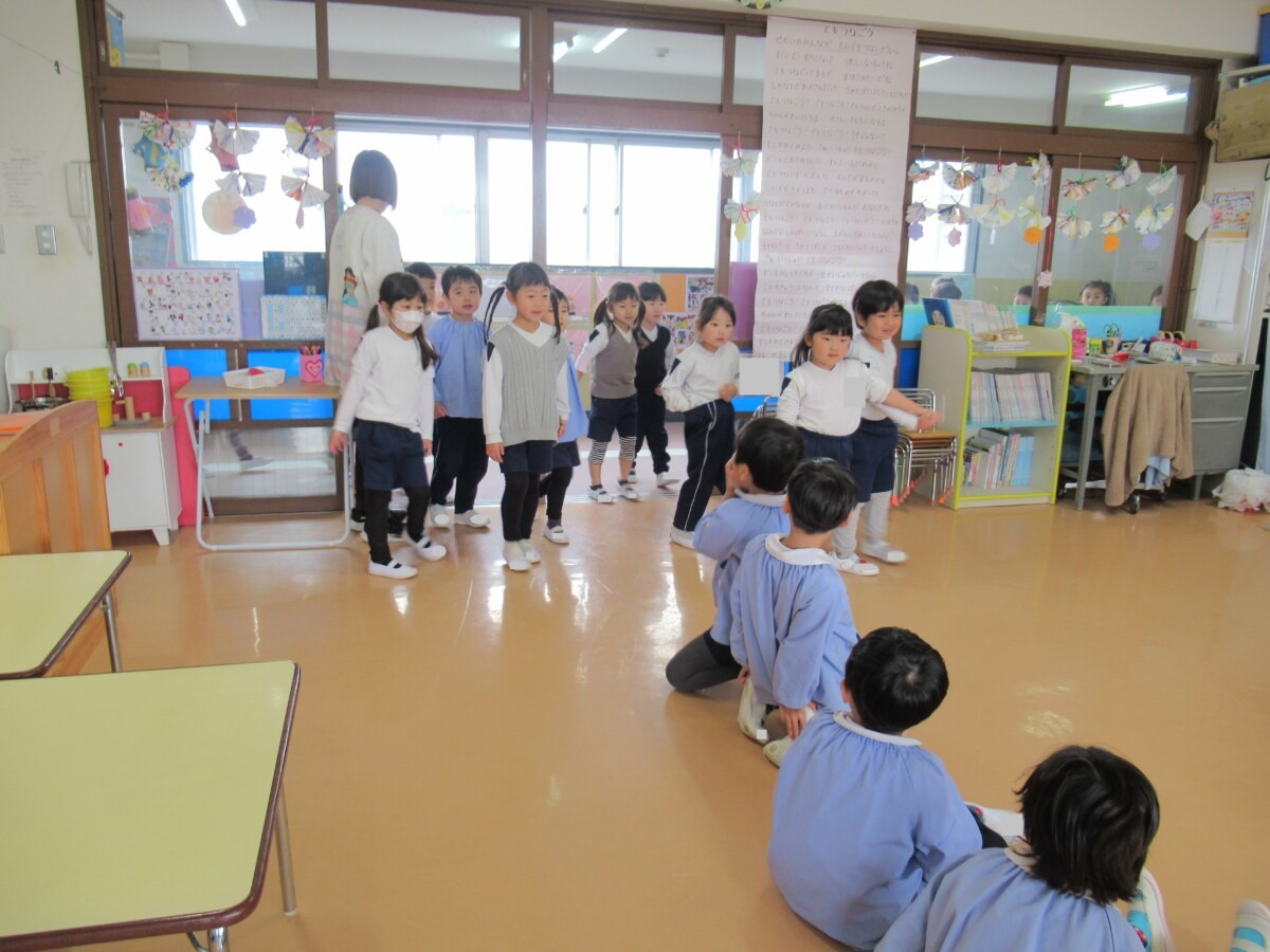 ☆年長組さんに向けて、年少組さん・年中組さんが歌のプレゼントをしました✨