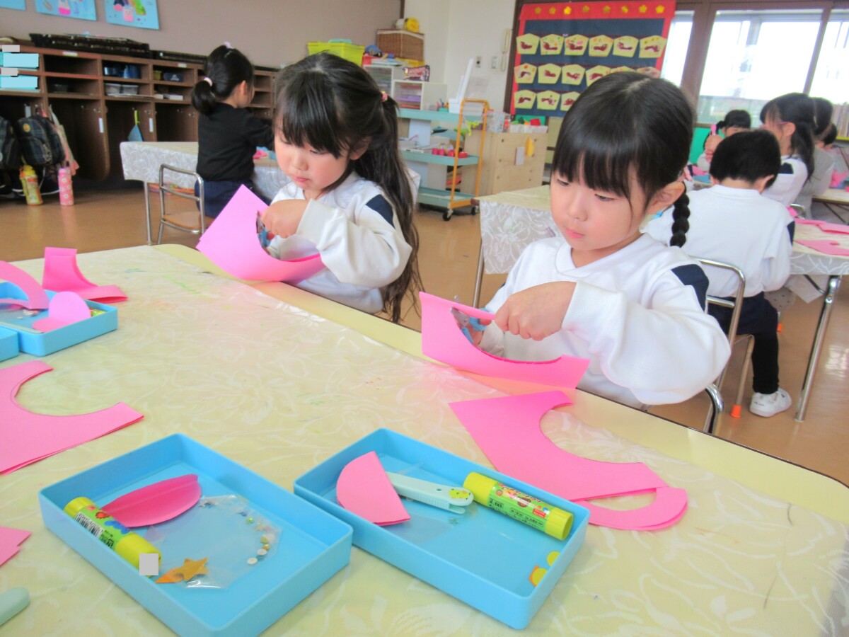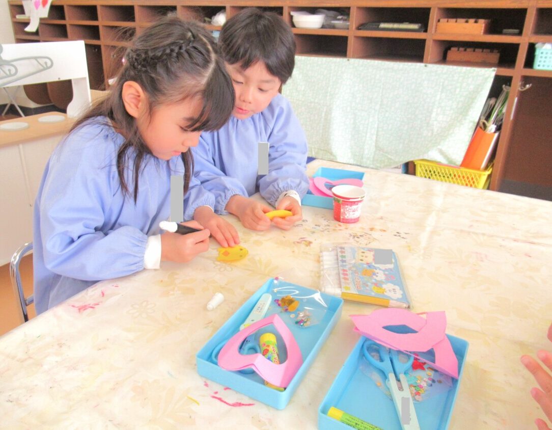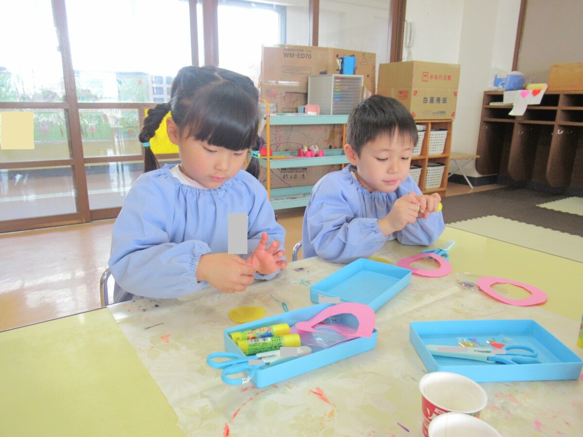 ☆年中組さんは、年長組さんになったときに入園する年少組さんにプレゼントするメダルの製作をしていました🐣✨