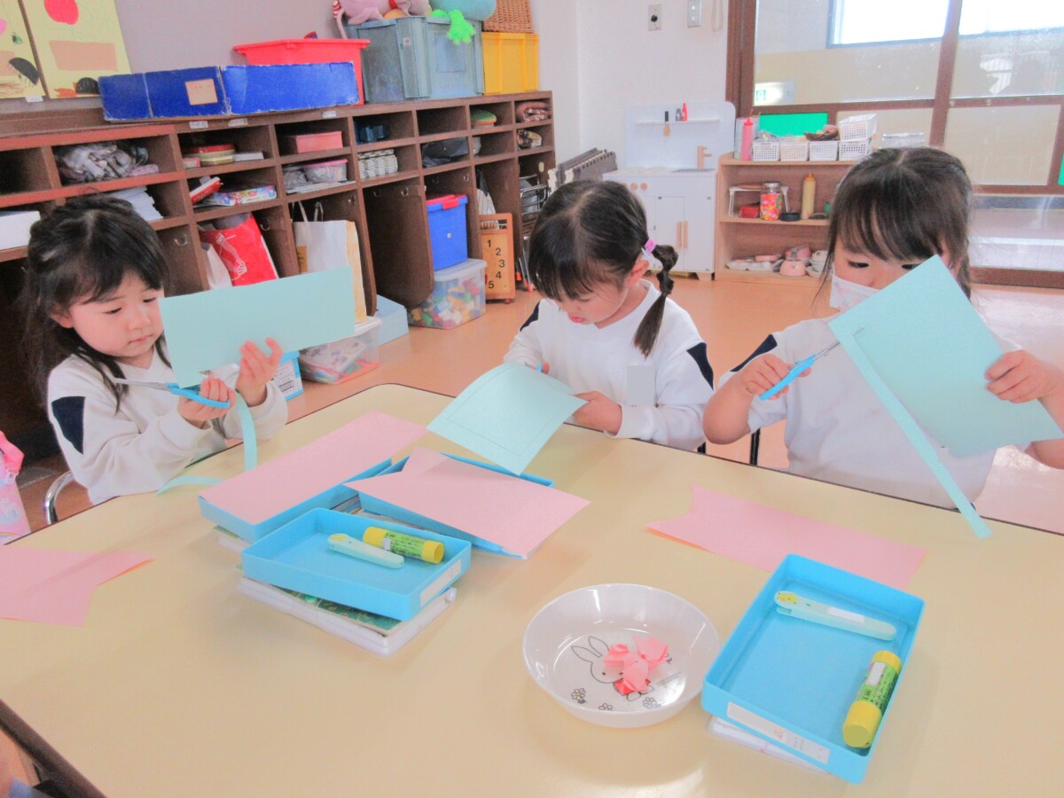 年中組は「こいのぼり」の製作を行いました。はさみで切ったり、のりで貼ったり集中して作っていました✨