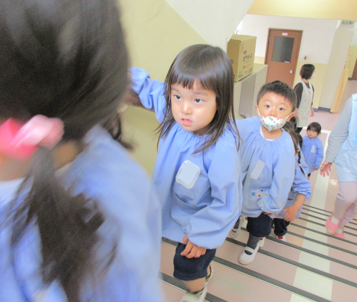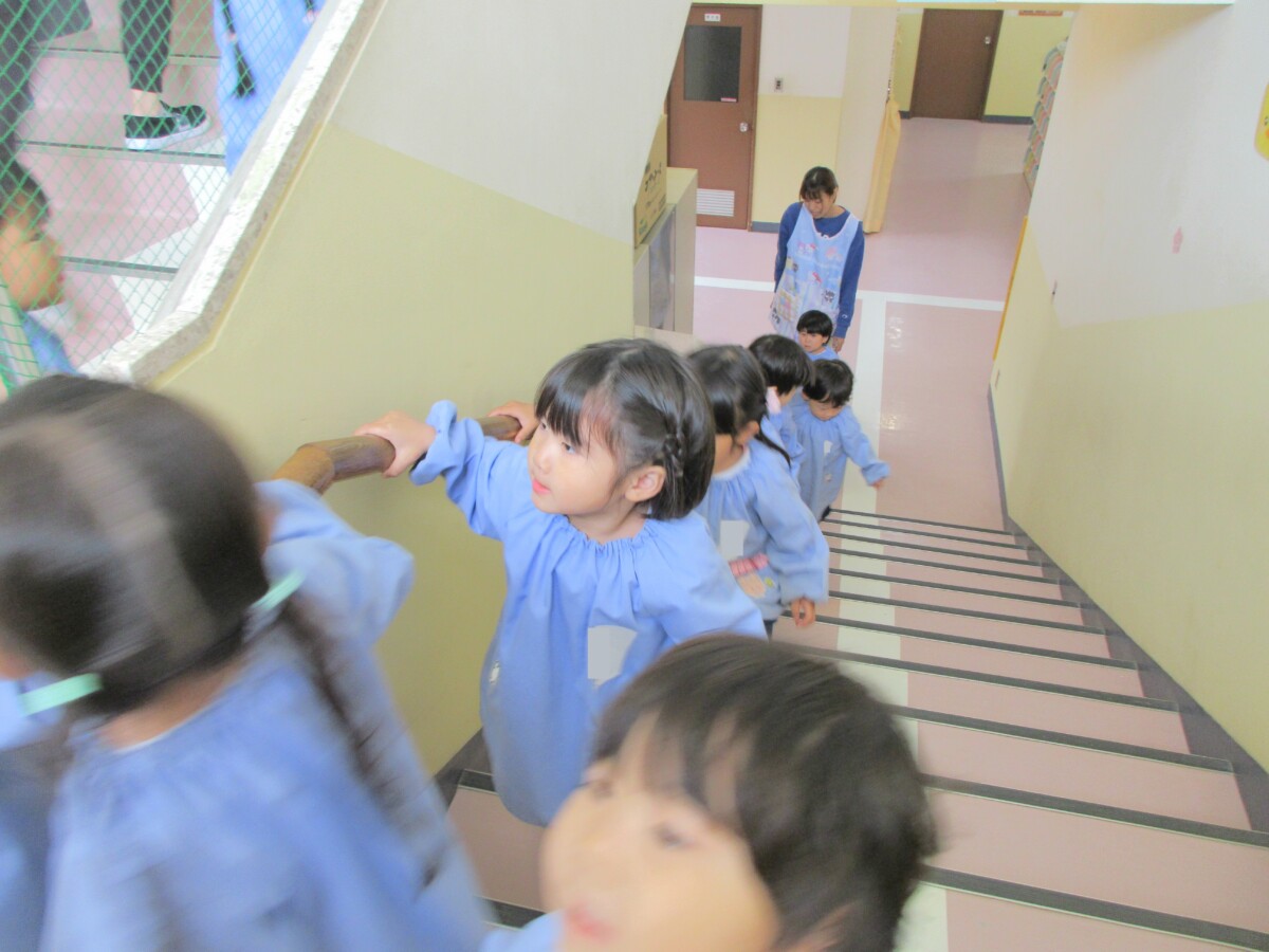 初めて幼稚園の階段を上って行く二階にわくわくしているようでした。