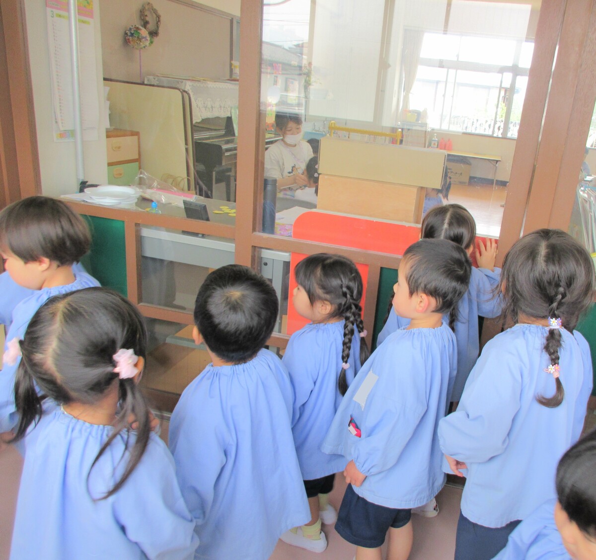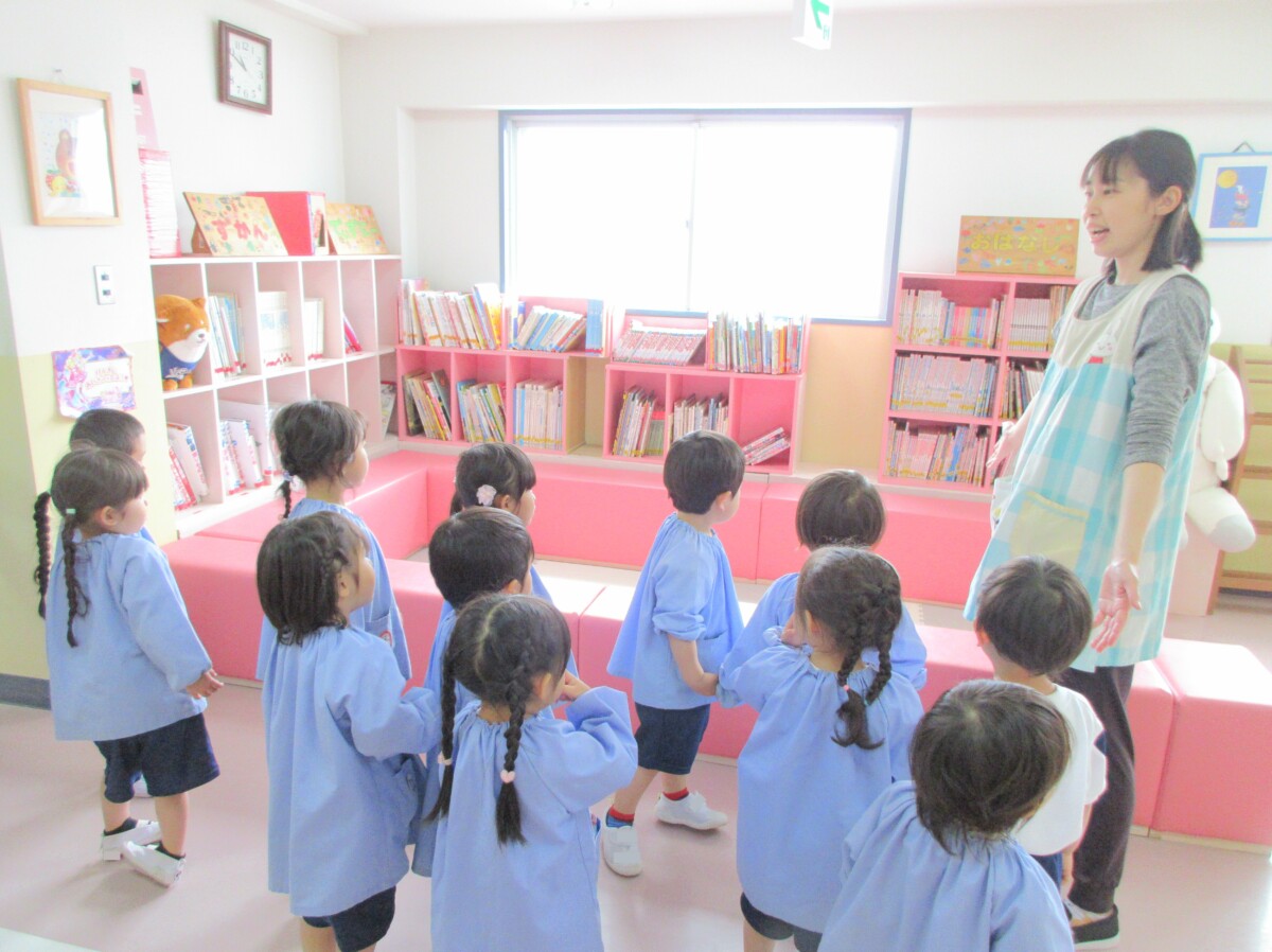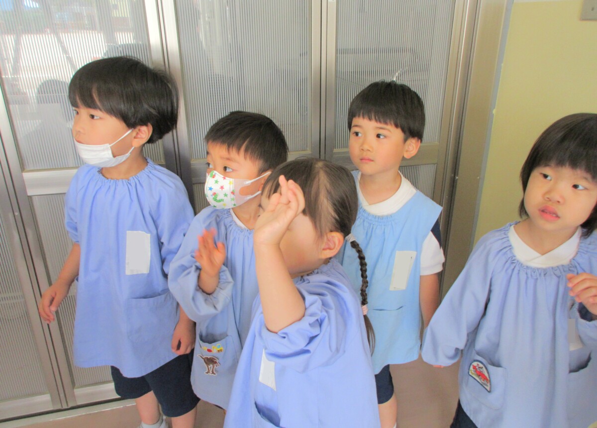 4月24日年少組は先生たちに園内を案内してもらいました。どんな場所があるのか触ってはいけない場所や物はどこかなど一つ一つ教えてもらい、子どもたちは興味津々な様子でしっかりとお話を聞いていました✨