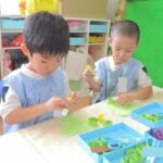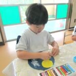 りす組さんが壁に飾る『ぶどう・マスカット』の製作に取り組んでいましたdz …