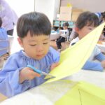 ☆ひよこ2組さんとひよこ3組さんが「はさみ」を使って製作に取り組んでいました&# …