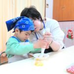 5月30日(木)に、年少組さんが絵の具をゼラチンで固めてゼリー状にしたものを使い …