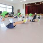 6月16日(月)に、年長組さんが、ホールでパラバルーンに取り組んでいました!! …